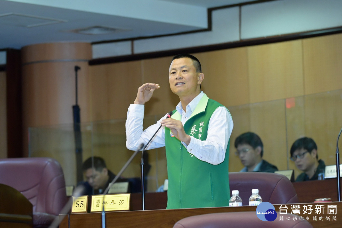 桃園市議會總質詢,市議員蔡永芳也針對加蓋屋頂設置太陽能板、大勇國小三角地徵收案進度、接收世大運組裝游泳池費用、累進費率停車格、紅綠燈配合連假和補班調整、國道三號八德第二交流道辦理進度、大湳水上樂園整治案進度及包裝飲用水檢驗等議題提出關心,盼市府盡速執行完成。