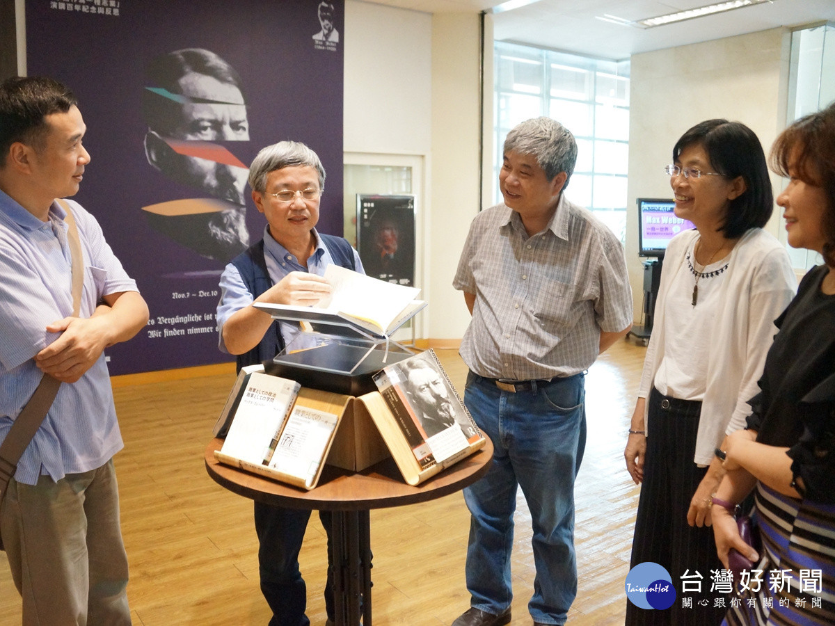 成大全新推出的「一冊一世界」主題書展,此次展出知名社會學家韋伯(Max Weber,1864-1920)的《學術與政治》,回顧他百年前的經典演講,並且陸續規畫1場主題演講與4場韋伯著作導讀。開幕式7日上午11時舉行,總圖書館一樓東側多功能閱讀區現場地面精心設計韋伯的大型人像,讓讀者可以站在定點使用手機拍攝,彷彿和韋伯對話互動,主題書展將持續進行至12月10日。