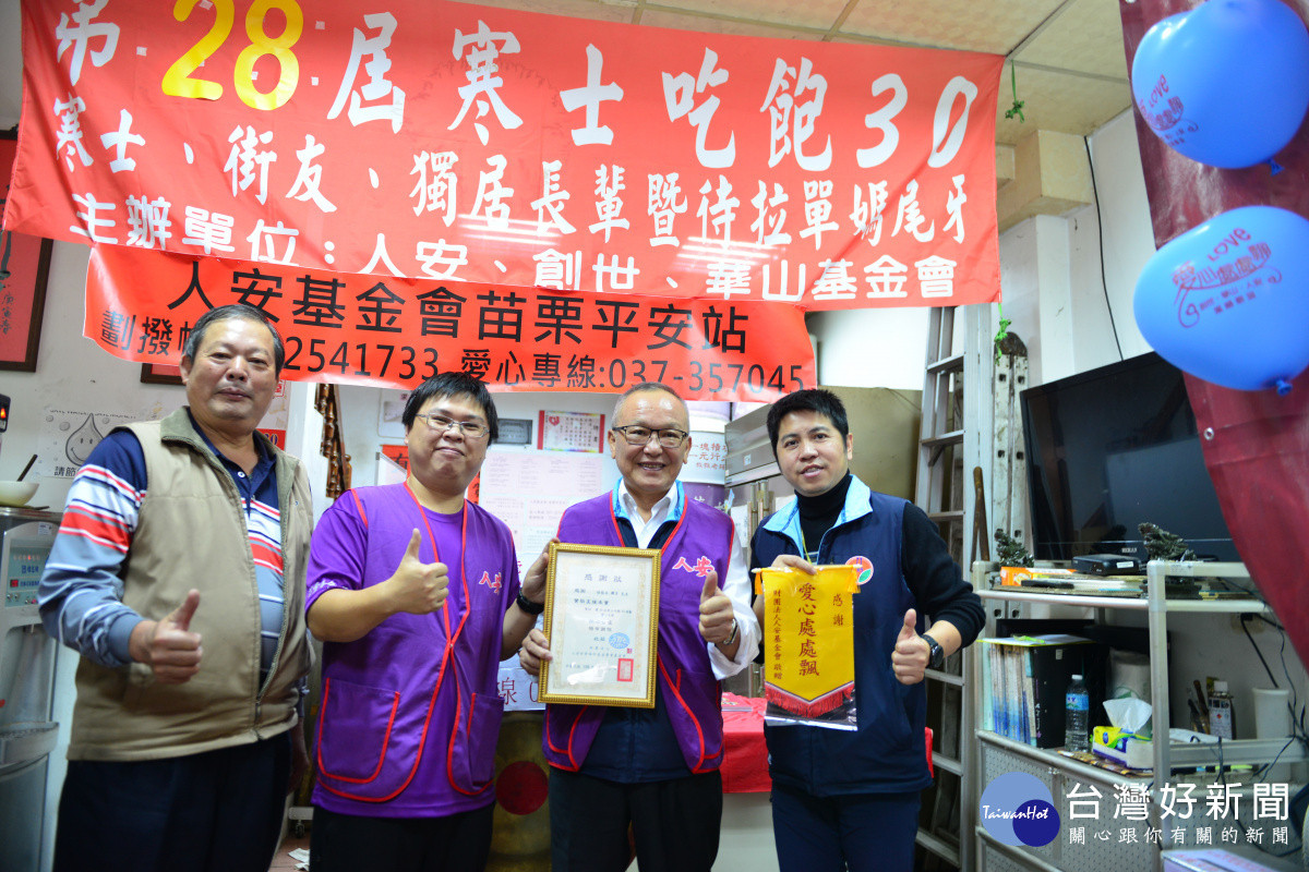 由人安、創世、華山基金會聯合主辦的「第28屆寒士吃飽30」活動,預定於107年2月4日農曆年前登場,人安基金會為籌募經費,苗栗縣長徐耀昌指出,希望各界能發揮愛心,踴躍捐輸,使活動能成功舉辦,讓弱勢族群及社會邊緣人感受到社會的溫暖。