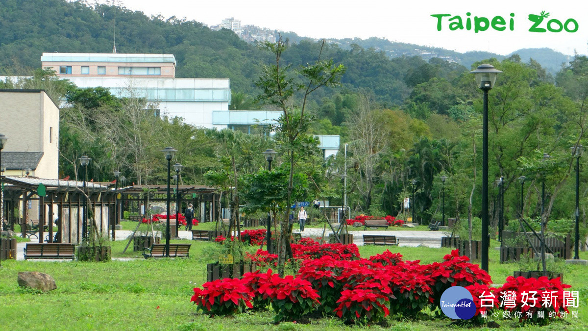 再過一個星期,就是一年一度的聖誕節了,臺北市立動物園於12月初,就在大門入口的紅鶴池前,搭起一棵近六公尺高的聖誕樹,希望讓所有的遊客,一入園就能立刻感受到濃濃的佳節氣氛。而在臺灣動物區入口處的迎賓草坡上,也布置了許多可愛的聖誕擺飾及動物綠雕,景緻溫馨浪漫,是許多學校及團體遊客拍攝大合照的熱門景點。除此之外,由動物園步行前往貓空纜車站必經的「動物保育公園」,今年也特別種植了150顆應景的「聖誕紅」,站在公園中心處朝四周放眼望去,一片紅綠交錯,映襯著藍天白雲,美不勝收超級有fu!