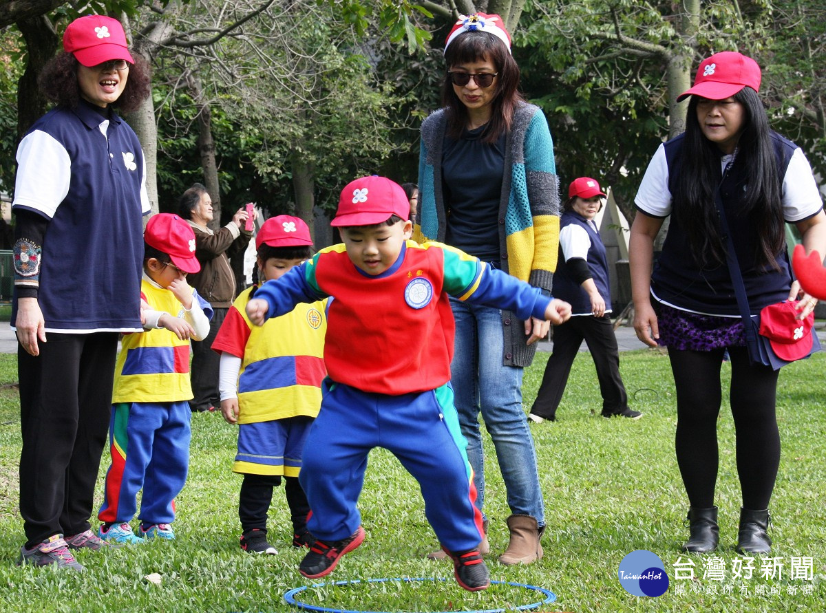新北市政府教育局副局長黃靜怡21日至市立板橋幼兒園-新民分班與學童進行「聖誕闖關歡樂GO」活動,關卡設計運用本市「0-5歲運動遊戲百科專書」結合新北動健康與歡慶耶誕城元素,讓幼兒們盡情快樂的運動和遊戲。