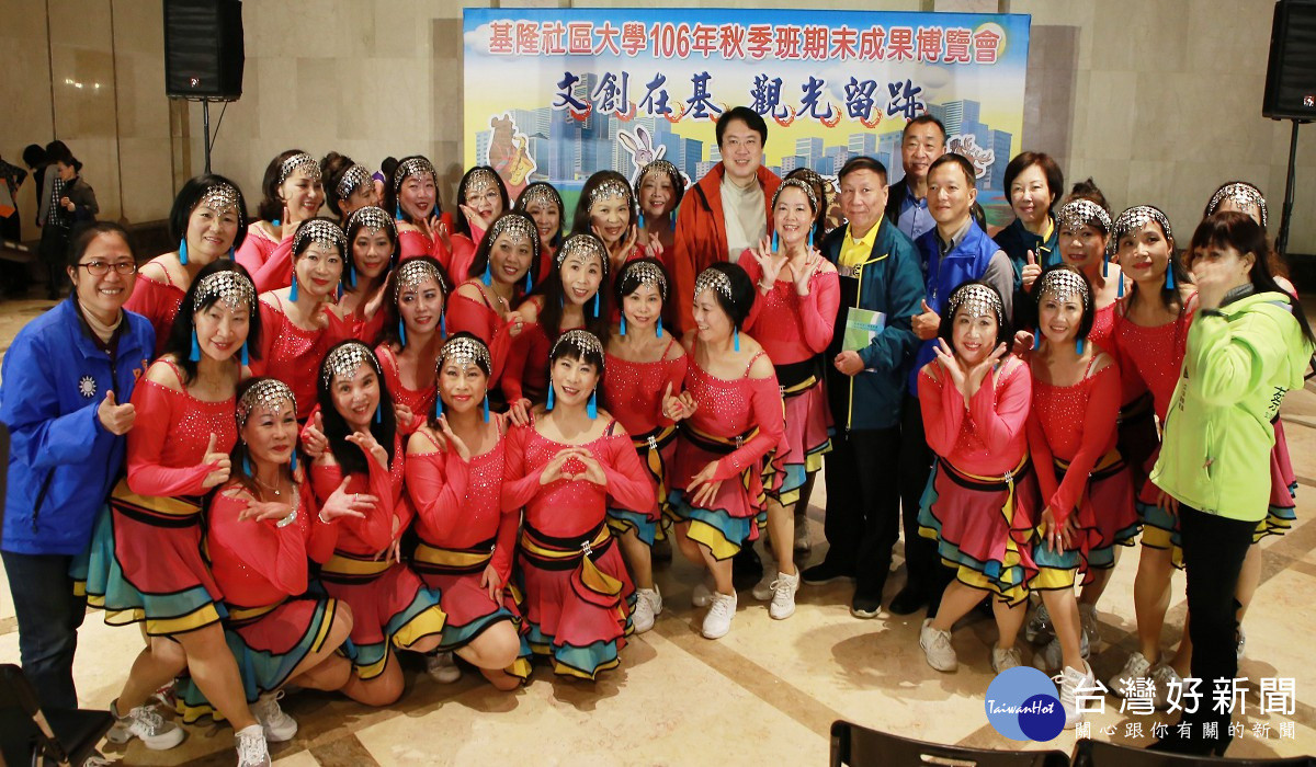 基隆社區大學106年秋季期末成果博覽會,20日於文化中心大廳熱鬧登場,市長林右昌欣賞學員精彩演出,感謝大家的參與,社大在全國評比迭獲佳評,強調今年有專屬教室提供教學,歡迎大家加入學習行列。
