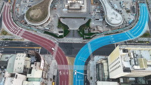 ▲高市翠華自行車景觀橋位於高市左營區,是臺灣首座跨越市區主要道路的自行車高架橋樑。