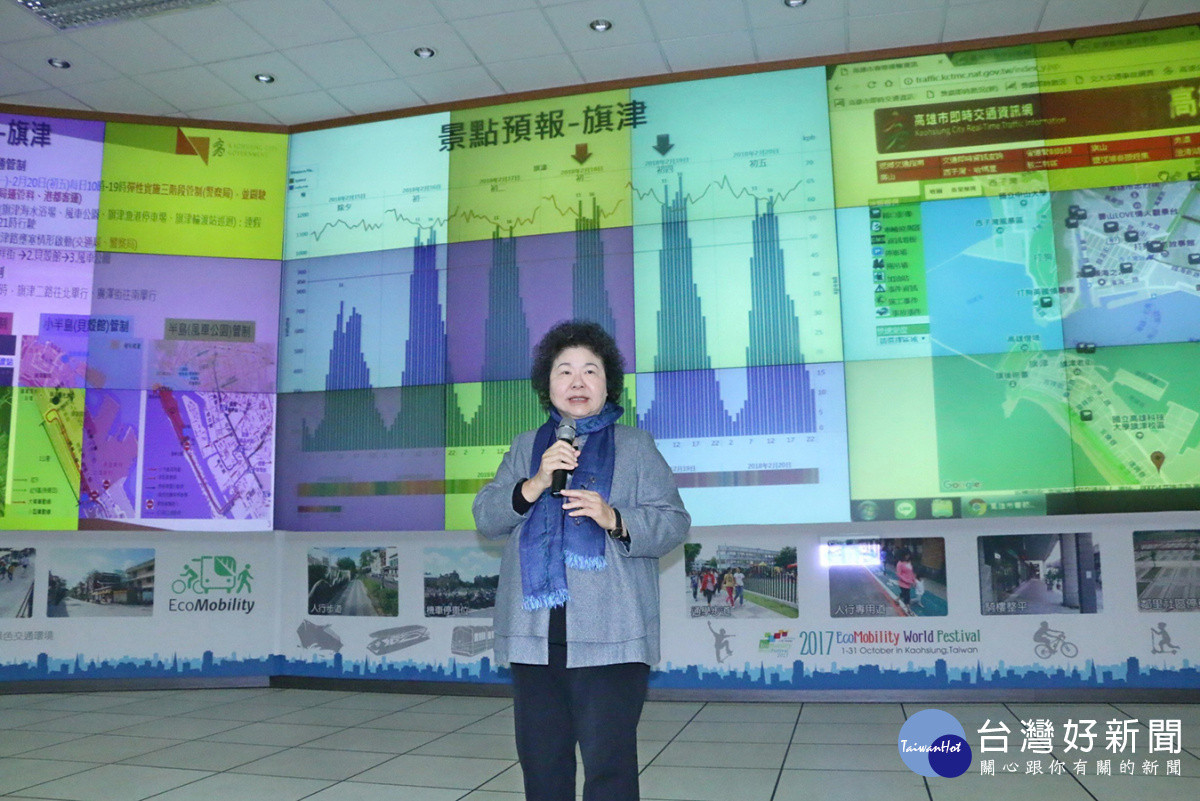 陳菊訪智慧運輸中心關心春節交通運輸規劃。(圖/記者潘姿瑛攝)