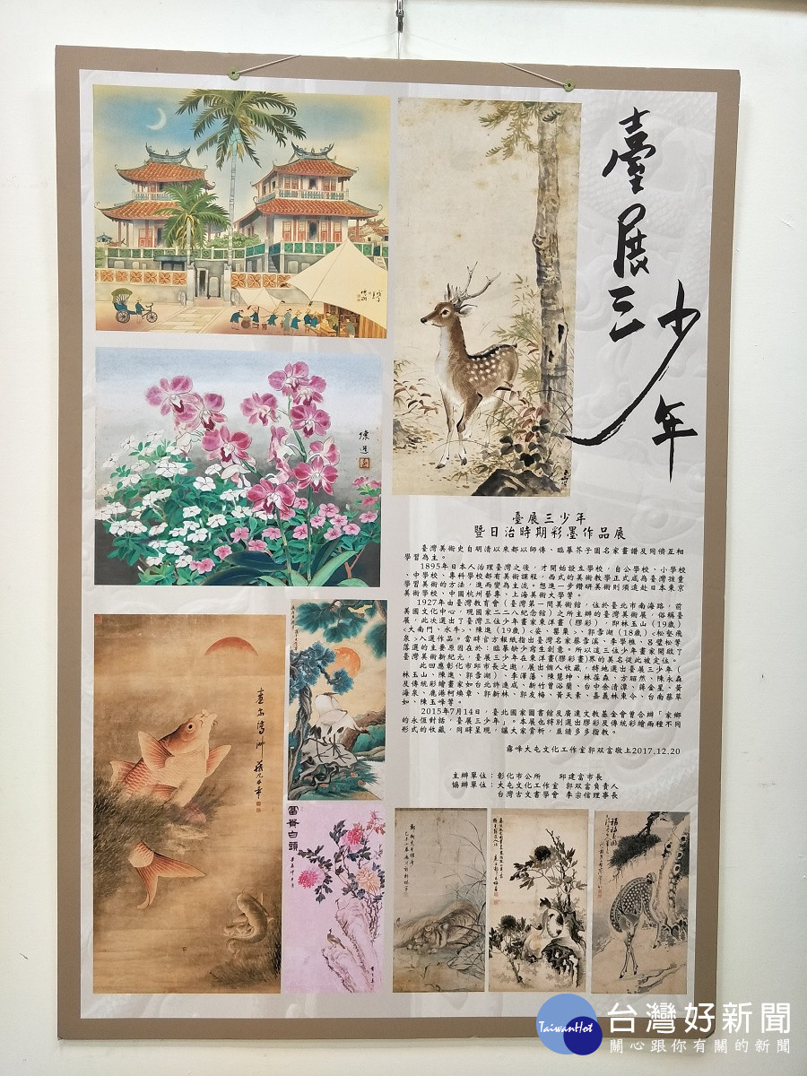 彰化市立圖書館為提升民眾的化藝術涵養,特邀知名臺灣文獻收藏家郭双富提供展件,自2月7日至3月1日在市立圖書館藝文展覽室舉辦難得一見的『臺展三少年暨日治時期彩墨作品展』,2月9日舉行開幕儀式,市長邱建富強調,三名少年當年被譽為開啟臺灣美術新紀元,其作品可說相當珍貴。