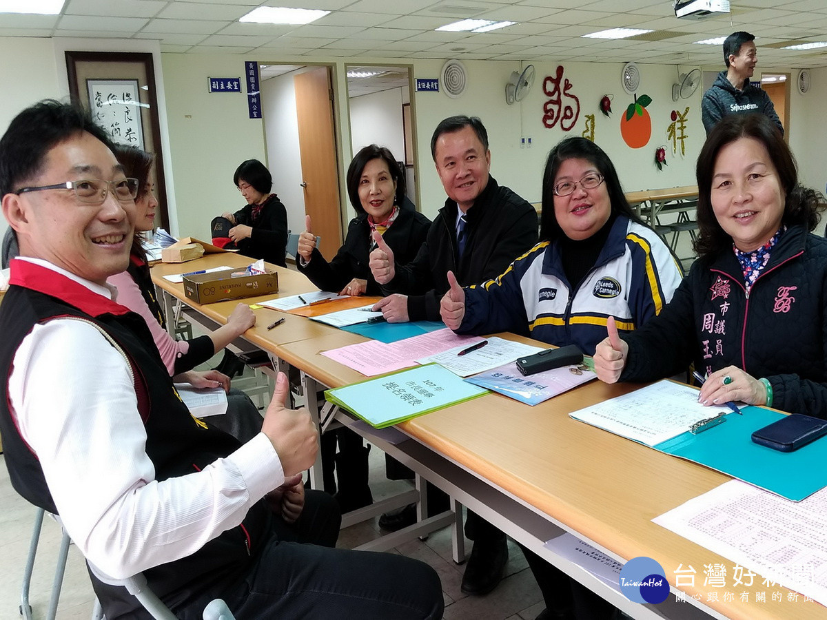 國民黨籍現任市議員周玉琴、謝彰文、李曉鐘、呂淑真(右起)在桃園市黨部領表及登記。