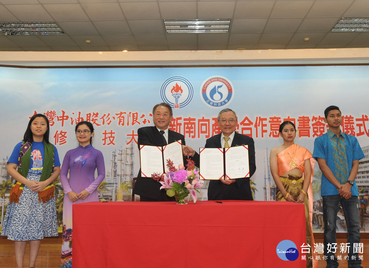「新南向產學合作備忘錄」(MOU)簽訂典禮由中油公司董事長戴謙與正修科技大學校長龔瑞璋共同主持,並邀請行政院南部聯合服務中心召集人戴雅明、勞動力發展署高屏澎東分署分署長程泰運、勞發署雲嘉南分署分署長柯呈枋等貴賓及雙方一級主管等多人共同見證,正修科技大學越南、泰國、印尼等國際學生都穿著該國傳統服飾與會。