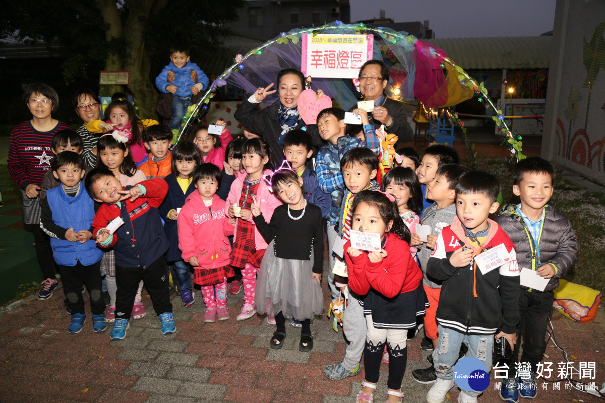 雙溪附幼的小朋友在逛完台灣燈會後,在老師和教保服務人員指導下,製作了水燈區、動物燈區、帳棚燈區、超神奇燈區等11個縮小版的燈區,取名「幸福燈會」,7日晚上在縣長張花冠和師長陪同下,興高采烈地為自己親手打造的燈區舉行點燈儀式,場面歡樂、溫馨。