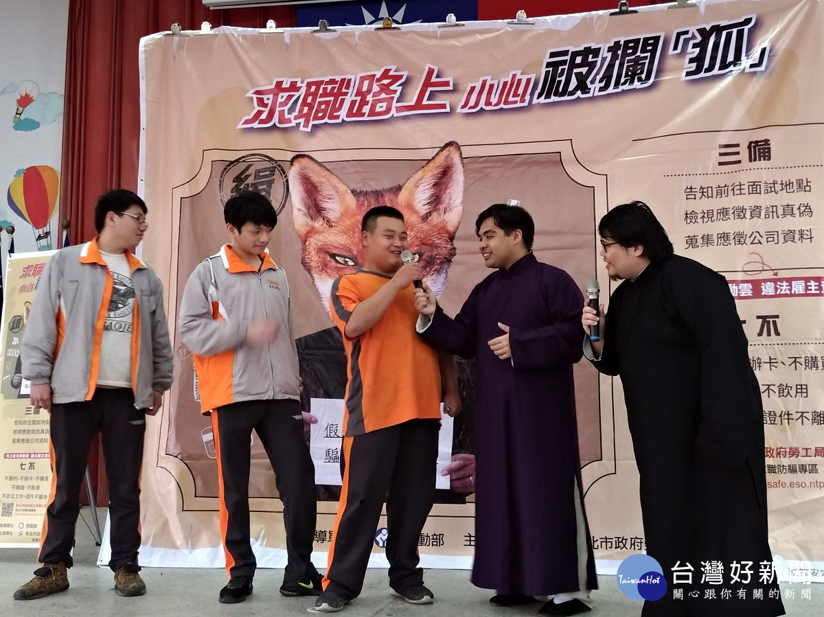 新北市為提升民眾正確求職觀念、保障求職安全,勞工局於今年規劃一系列的求職防騙宣導活動,第1場校園巡演於日前在中華海事職業學校熱鬧登場,由「笑林豪傑」相聲劇團擔綱演出,現場笑聲不斷、反應熱烈,讓學生們度過一個開心的下午,並在歡樂的氛圍下認識正確的求職觀念。