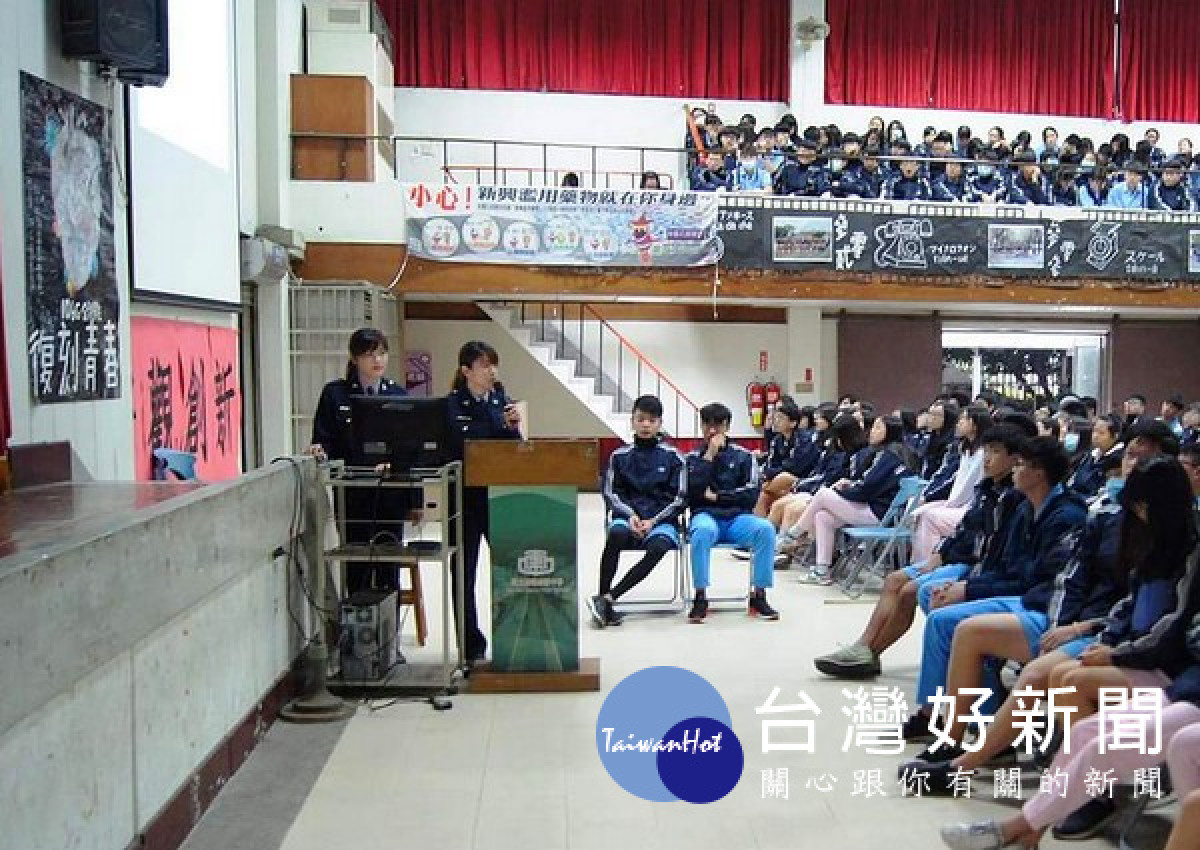 虎尾警方前進校園宣導交通安全,灌輸師生正確的交通安全觀念,避免交通意外傷害。(記者陳昭宗拍攝)