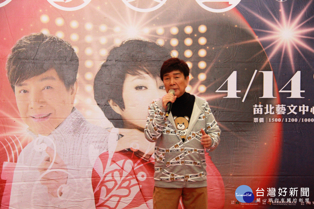 昨(15)日上午,縣府舉辦演唱會記者會,歌王謝雷搶先亮相,演唱成名曲「酒國英雄」、「夜空」等歌曲,渾厚的嗓音與動人的歌聲讓人聽得如癡如醉,縣長徐耀昌、文觀局長林彥甫、苗北藝文中心總監吳博滿也到場聆賞, 一起為活動宣傳。