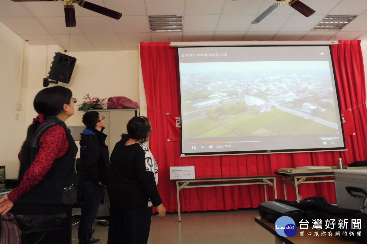 西港區港東社區老人家見到空拍機的外觀說感覺就像是玩具,很難想像這麼小的飛機可以飛越七公里外的曾文溪,用手機看到空拍機拍回來畫面非常清楚,大家圍在一起爭看和尋找自己的家,當自家畫面呈現時,連連驚叫「我家像火柴盒啦!」
