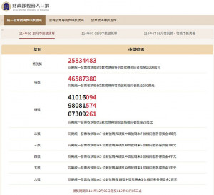 財政部今(11月25日)天下午開出114年9、10月期統一發票中獎號碼,千萬元特別獎號碼為25834483、200萬元特獎號碼46587380。大家趕快對自己手上的9、10月發票,看看自己是否有機會除了普發1萬元外,幫自己多賺一些紅包,甚至是贏...