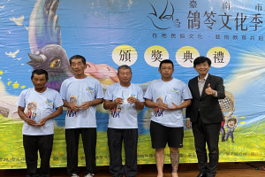 市定民俗台南新營鹽水學甲放粉鳥紅腳笭活動,2025年賽事歷經2個月的拼戰,評選出65位優勝者,由副市長葉澤山頒獎表揚。文化局表示,頒獎典禮原訂7月舉行,因丹娜絲風災影響而順延。這項賽事已傳承...