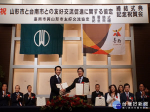 台南國際芒果節今(23)日在走馬賴農場開幕,遠從日本而來的靜岡縣富士宫市市長須藤秀忠率領的團隊、群馬縣水上町及千葉縣白井市等貴賓,特地前來參加芒果節參與,一起推薦優質的台南愛文芒果。李市長致...