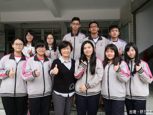 港明高中校長劉麟麟(著紅衣)、教務主任黃文雄(左一)與繁星醫學系通過學生。