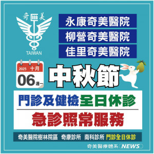 3連假即將到來 奇美醫療體系公佈相關醫療作業訊息