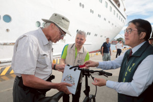 「海上移動住宅」奧德賽號郵輪停靠安平港 黃偉哲親迎旅客贈送伴手禮