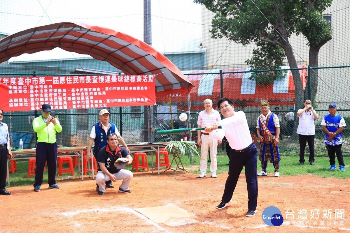 中市首屆原住民市長盃慢壘賽 林佳龍開球宣告比賽開始