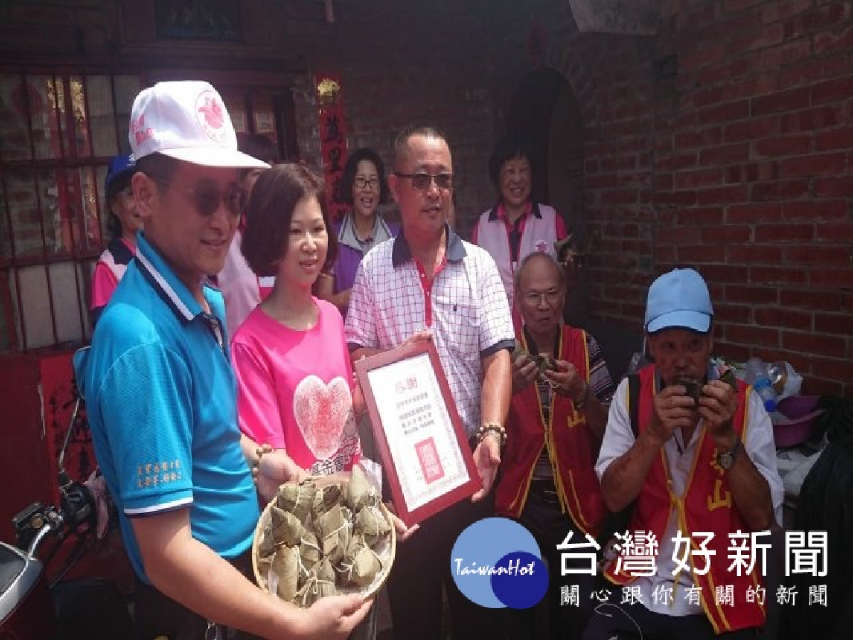 大安區農會以取之於社會、用之於社會的回饋精神,八日致贈愛心肉粽給海線八區獨居長輩過端午節,華山天使站於活動中致贈農會感謝狀,會場透出濃厚的溫馨。(記者陳榮昌攝)