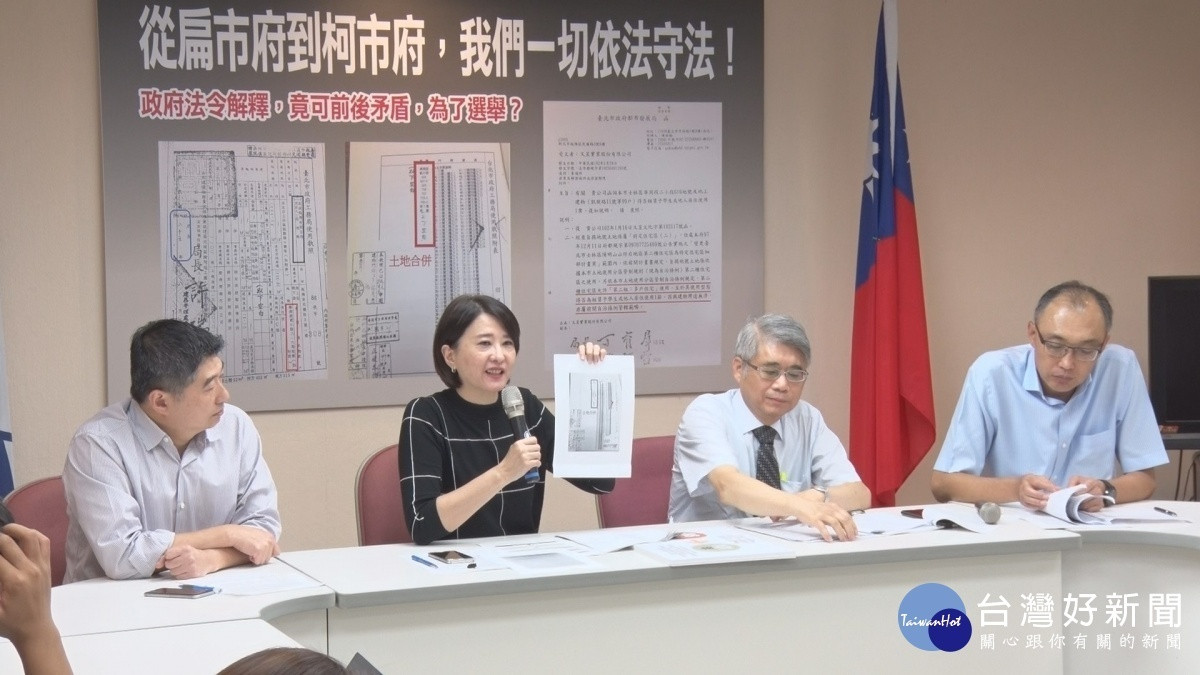 台北市議員王威中帶著台北市政府官員到文大宿舍會勘,因為遇到學生要準備考試吃了閉門羹,眼看侯友宜宿舍風波不斷延燒,藍營議員也召開記者會聲援自家人。市議員王鴻薇拿出當時北市府回函的公文資料,證明都發局過去認定文大宿舍出租一切合法,現在卻隨著綠營議員起舞,質疑市府做事根本是雙重標準。