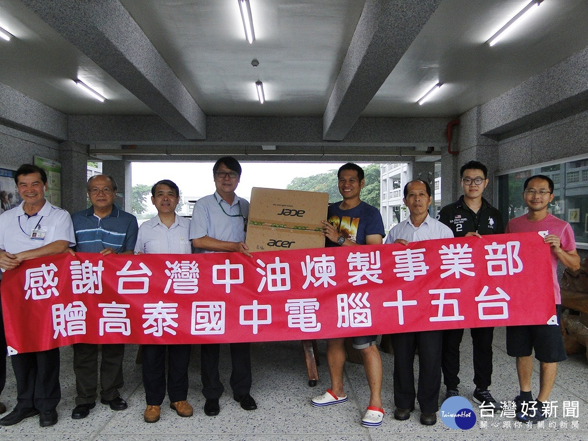 台灣中油公司煉製事業部配合政府推動社會關懷、縮短城鄉數位差距政策,及響應中油公司「再生電腦捐贈計劃」。煉製事業部行政室胡漢鯤主任率資訊室李政憲經理及公關組同仁等一行人於107年6月20日前往屏東縣高樹鄉高樹國中,贈送25部再生電腦,及高泰國中,15部再生電腦,分別由高樹國中邱文永教務主任及高泰國中李木生總務主任代表接受,推動偏鄉學校的照顧,善盡企業社會責任。高樹國中邱文永主任、高泰國中李木生主任也都致贈感謝狀,由煉製事業部胡漢鯤主任代表接受,捐贈儀式簡單隆重。