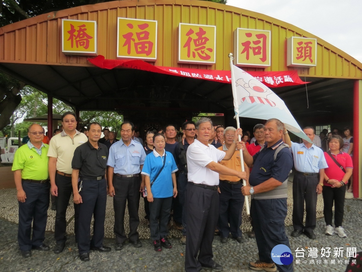 苗市公所暑期防溺宣導暨祭水神活動,市長邱炳坤授旗給苗栗市河川巡防隊。(記者許素蘭/攝)