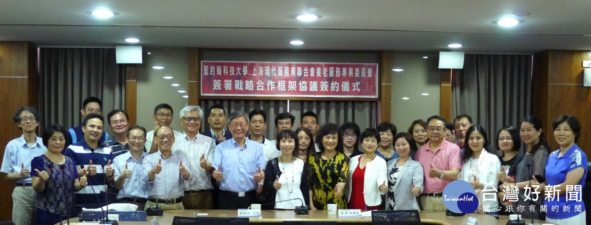 上海現代服務業聯合會養老服務專業委員會(簡稱:上海養老專委會)一行20人來台進行8天高齡照顧服務產業考察,行程中特別參訪聖約翰科技大學,並於107年6月21日簽署戰略合作框架協議,優先著手人才培訓標準化制度建置,加強兩岸安養(養護)機構實務經驗交流,提升雙方照顧專業實務能力,讓服務品質獲得一致性保證。其次,將推動智能輔具導入居家照顧、社區照顧,降低人事成本並提高工作效能,且減少人為誤差所造成傷害或損失。