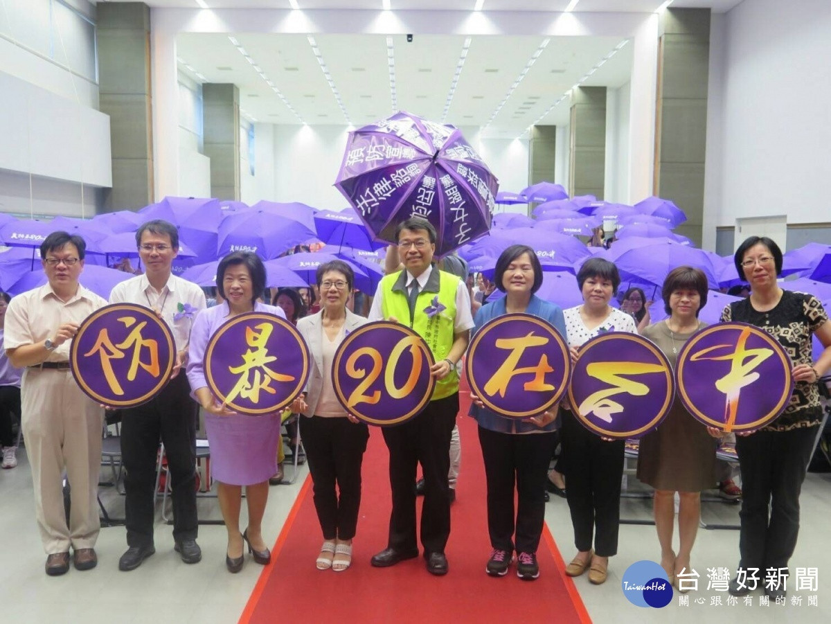 「家庭暴力防治法」立法20年,台中市家庭暴力及性侵害防治中心特別舉辦「防暴20在台中」高峰論壇,邀請各縣市防暴網絡代表出席,透過專家、學者、實務工作者及網絡代表分享推動經驗,共同呼籲家庭暴力防治應從關懷自己居住的地方做起,宣誓永不向暴力妥協的決心。