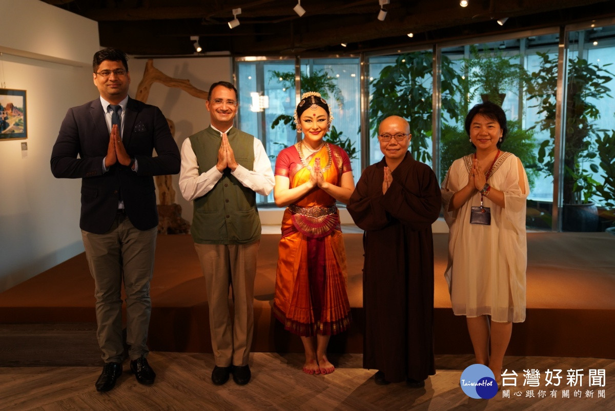 「生命和平多元空間」與「慈悲之路:佛教聖地和藝術遺產—本諾伊‧貝爾攝影展 」開幕儀式圓滿後,執行長了意法師與印度台北協會賈旭明副會長、助理會長軒轅揚勳、印度舞者Erina Kasai、若持敏弘、西瓦印度舞團等貴賓上台一起合影,留下了歷史性珍貴的畫面。