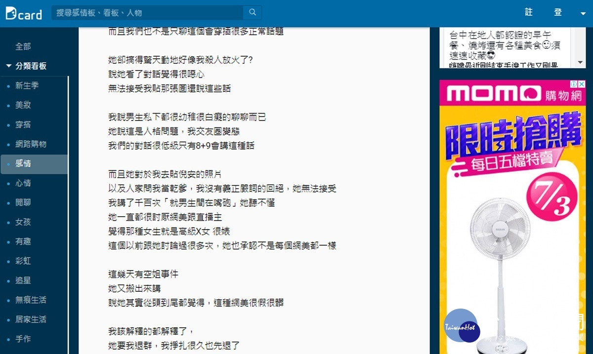 有網友因為在朋友聊天群組中PO了一張網紅照片,結果惹得才剛登記新婚的太太嗆聲要毀婚,逼得老公只好上網求救。(圖/截自Dcard)