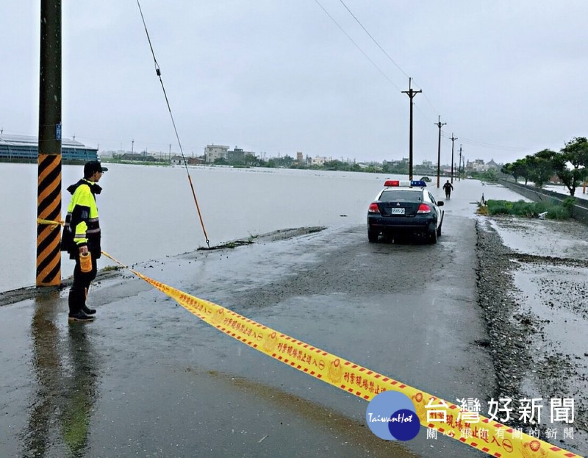 分局長廖志明表示,口湖鄉蚵寮村下萡仔寮中華街251號周邊地區積水排洩不通,水林鄉松北、松中、松西、瓊埔、塭底、部分地區積水嚴重;水林鄉溪墘村溪墘厝98號至和安國小,道路積水約100公尺,無法通行;北港鎮好收公墓產業道路也積水相當嚴重,還有車子掉落,所幸無人受傷,針對上述路段,警方拉起封鎖線管制,呼籲鄉親注意安全,不要前往。