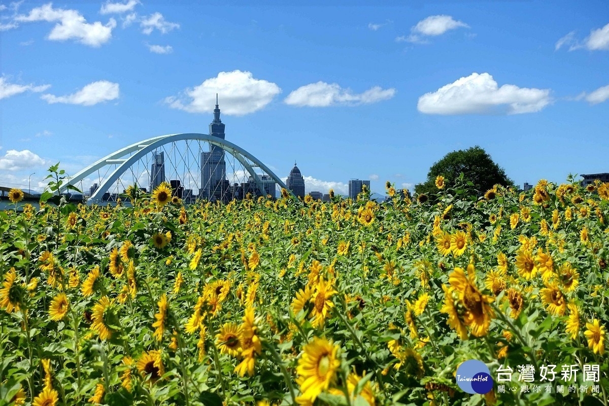 北市彩虹河濱23萬朵向日葵熱情綻放(圖/台北市水利處提供)