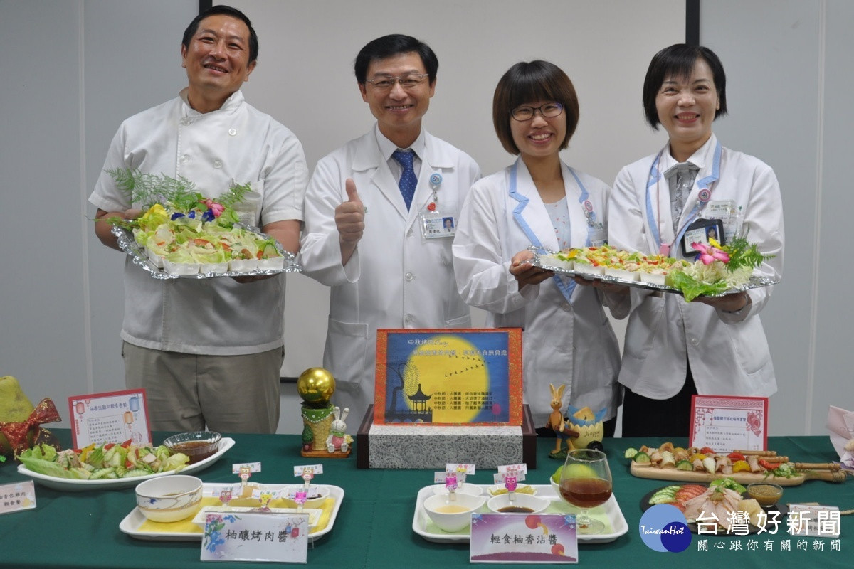 中秋到,養生概念夯,為了讓民眾輕鬆無負擔享受烤肉美食,佳里奇美醫院營養科運用當季水果柚子,推出2款低鈉烤肉醬。營養師黃盈真表示,柚釀烤肉醬、清爽柚香沾醬是用天然食材作中和,作法簡單且鈉量減半,透過廚師鄭皓文巧手製成。院長周偉倪品嚐後稱許清爽、無油膩感,未來可大量推廣,供糖尿病、腎功能不佳等病友食用。