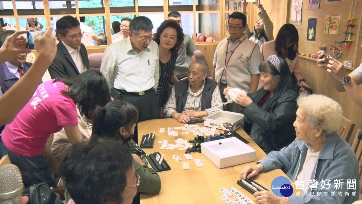 看到市長柯文哲到訪,長輩們開心地唱起歡迎歌。為了慶祝在大安區的日照中心終於完工啟用,平均年齡70歲的阿公阿嬤,還帶來熱情舞蹈表演。