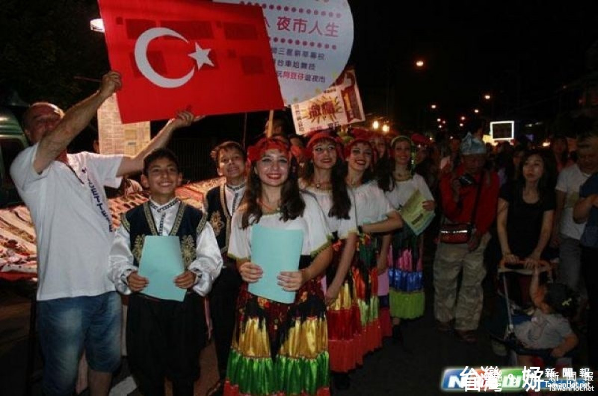 土耳其「哈塞德貝大學附設兒童和青年民俗舞蹈團」的團員們,沿著清溝夜市或擊鼓唱歌,或廣發傳單,在人聲鼎沸的夜市宣傳「童玩ㄟ夜市人生」活動,所到之處立即成為眾所注目的焦點,也引來一些民眾熱情回應,兩國國人能夠相遇清溝街頭,也算是一種非常特別的機緣巧遇。