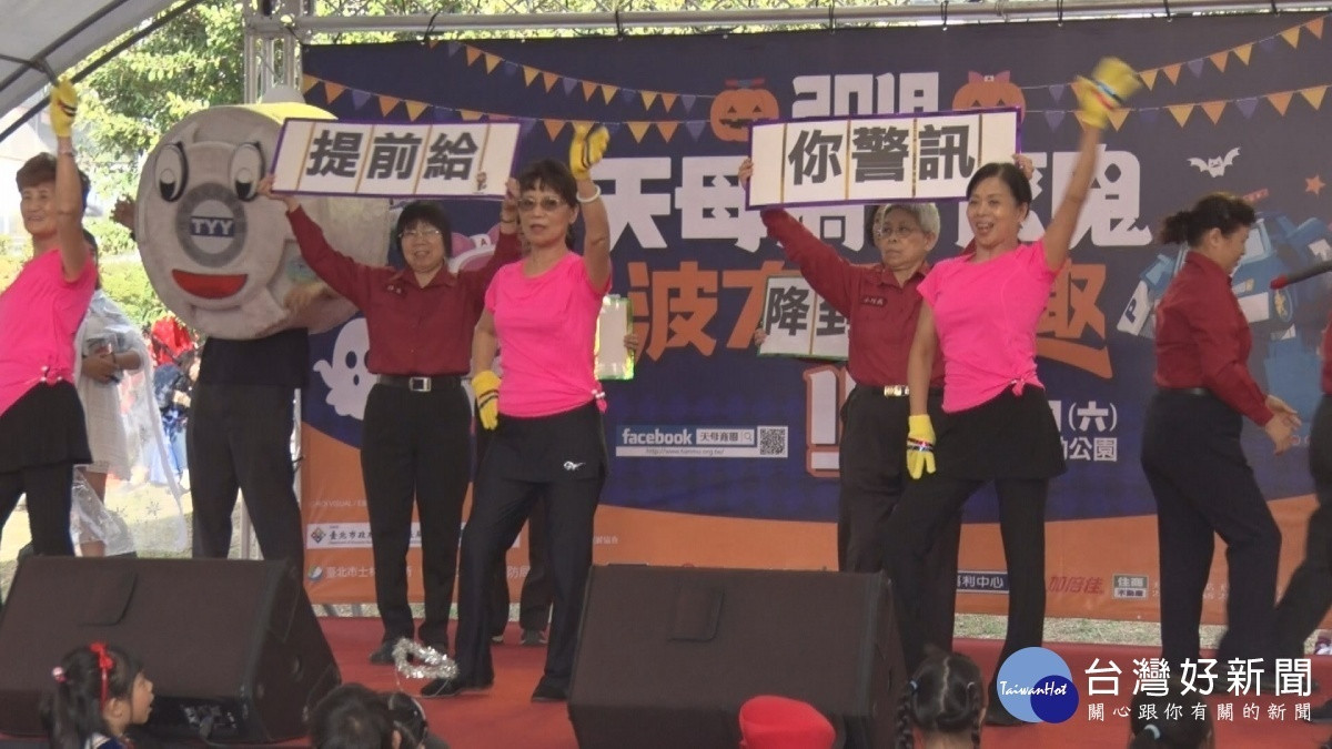 消防隊員變妝成吸血鬼和天使,在舞台上超熱氣氛,並透過有獎徵答聚集人潮,婦宣隊成員更帶來自創舞蹈,向民眾宣揚正確防災觀念。