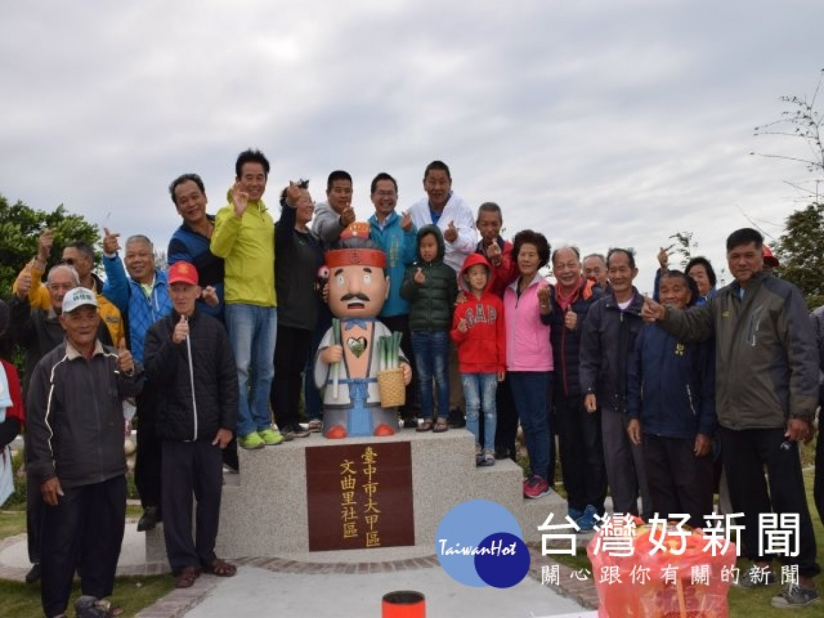 大甲區興建周朝封神榜演義故事,第二期工程陶塑的Q版故事人物比干活潑可愛,手持主要在地農特產青蔥,昨日舉行揭幕典禮,希望有益大甲的觀光事業、帶來商機。(記者陳榮昌攝)