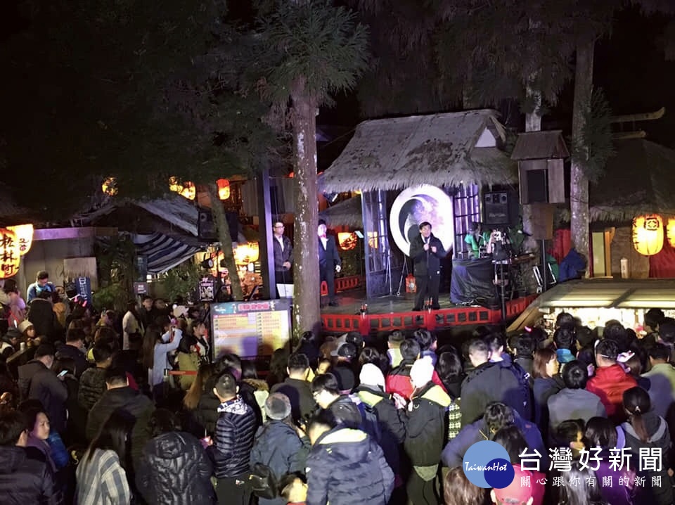 縣府秘書長洪瑞智前進溪頭妖怪村出席跨年晚會,會同妖怪村商圈發展協會理事長林修誠和熱情民眾一起倒數跨年,共許2019新年新希望。