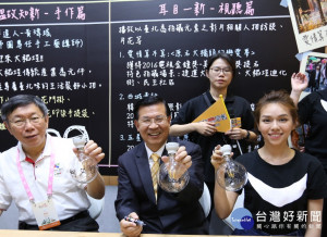 副秘書長邱敬斌、局長陳國君及長榮發言人柯金成等啟動美拍相機,盛情邀請韓國旅客造訪怎麼拍都精采的新北市。(圖/記者黃村杉攝)