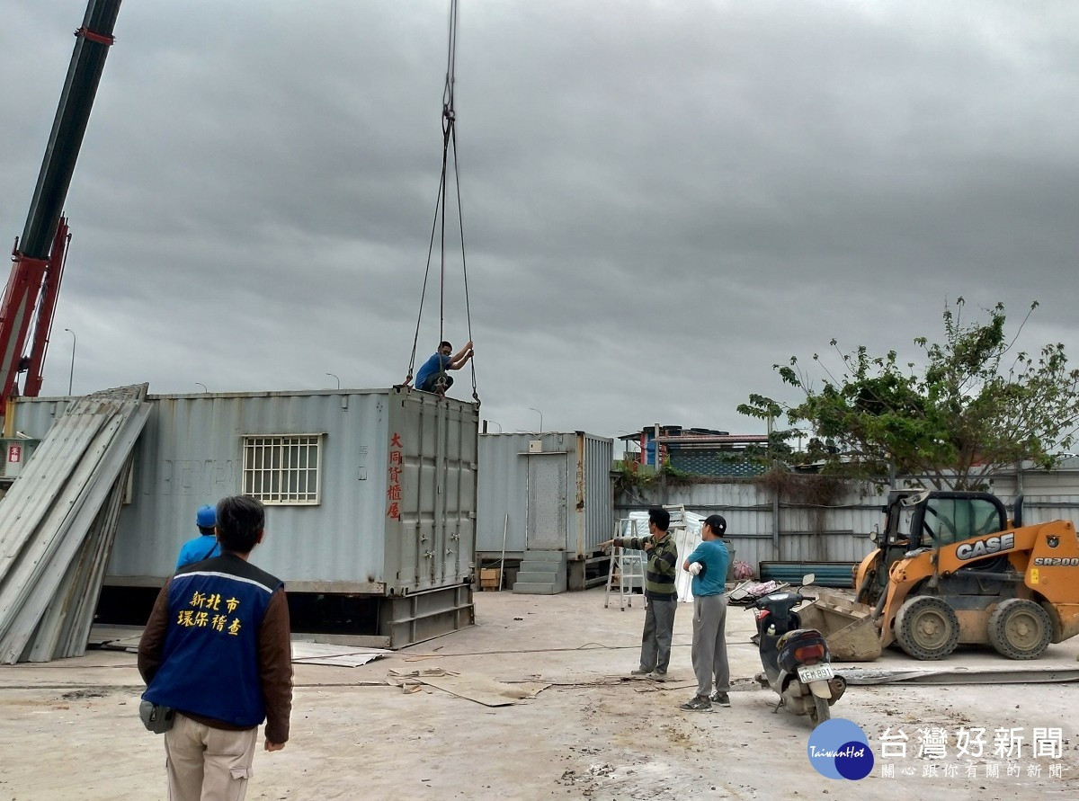 環保局於去年6月1日提報公安小組成員聯合會勘,果然發現以貨櫃屋環繞之場地,鋪設有水泥地且私設了用來焚燒廢棄物之焚化爐,而該爐體未有任何空氣污染防制設備,稽查時現場還殘留有燃燒過後之灰燼,該等建物被認定為違章建築後,遂限期地主於9月30日前移除污染源,而後經複查,其已自行拆除煙囪及爐體。