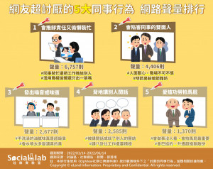 職場的人際關係與看氣氛說話的時機,被多數人視為一大學問,但難免會遇到一些處不來卻又避不開的同事,辦公心情可能因此受到影響。《Social Lab社群實驗室》本次透過《OpView社群口碑資料...