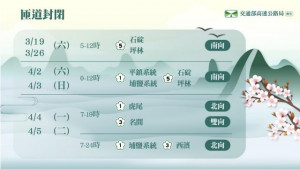 高速公路局根據近年清明節連假交通特性研判,假期間交通需求以掃墓及旅遊旅次為主,且交通量僅次於春節連假,約112 ~ 120百萬車公里,為平日的1.4倍。其中,南向交通量集中於連假第1、2日上...
