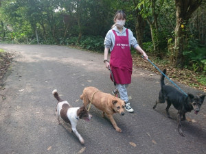 ▲寒冷冬天志工帶毛寶貝外出散步曬太陽。圖/新北動保處新店動物之家位於偏遠及人煙稀少的安坑山區,由於自來水管線不普及,動物飲用水源均是山泉水,為讓動物飲用水品質穩定,新北市政府動保處進行電力改...