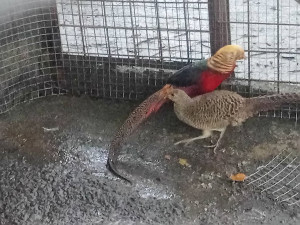 ▲紅腹錦雞雄鳥及雌鳥。圖/新北動保處提供新北市政府動保處上月初接獲板橋區熱心民眾通報,發現2隻金雞,遭人棄置於馬路旁邊,經動保員邱奕峻、方英傑到場救援,發現竟是2隻俗稱招財金雞的紅腹錦雞,帶...