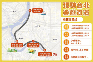 「小鴨慢騎」回來啦,臺北市政府水利工程處表示,今年正式邁入第5屆的「小鴨慢騎」活動進化了,首度採線上認證的方式,只需備妥自行車及可上網的手機,沿著本次規劃的路線,就能親子共遊3處河濱兒童遊戲...