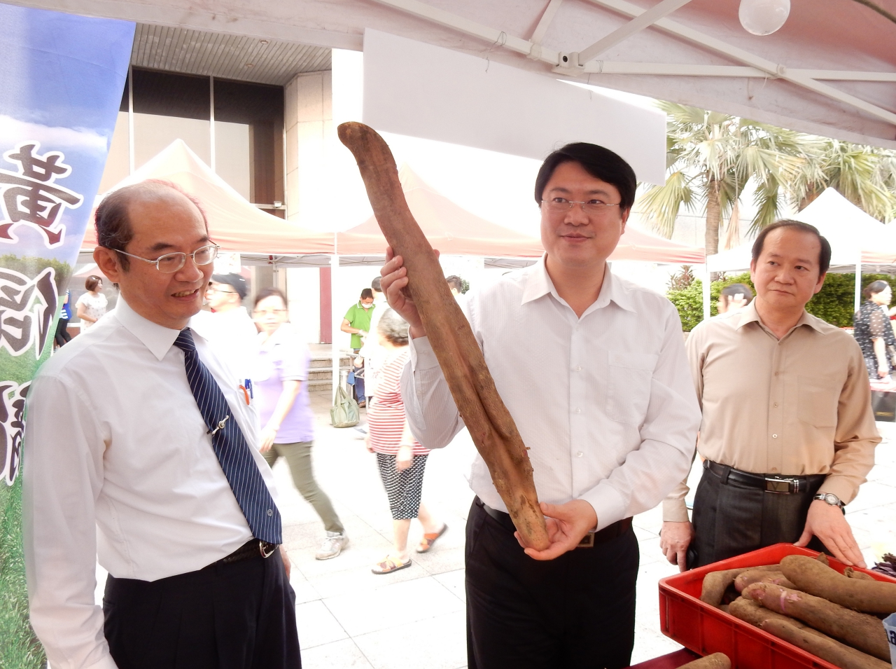 林右昌由農會理事長陳詔文與產發處長林福來陪同,親身走訪會場攤位,與農友交談,關心今年山藥生產及各項農特產促銷狀況。市長除肯定農友們的用心,對基隆山藥品質,讚不絕口。
