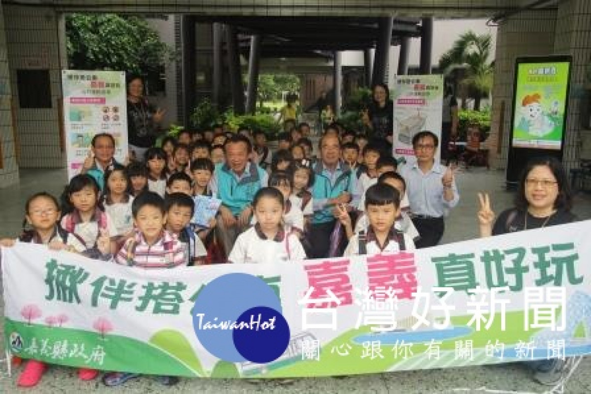 搭公車遊嘉義,縣長翁章梁陪同新港國小40多位師生體驗趣