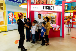 朱立倫市長、教育局長林奕華、勞工局長謝政達等於小漾扭蛋機轉出9、10、11及12月活動球後揭開主題展序幕。(圖/記者黃村杉攝)