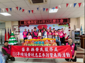板橋榮家12月份慶生活動,現場洋溢溫馨與喜悅,除了為壽星長輩獻上生日祝福外,更迎來苗栗縣榮民服務處榮欣志工團隊北上送暖,使慶生活動倍添溫度與情誼。苗栗榮服處總幹事率領約20名榮欣志工專程前來,不僅親切問候住民長輩,也...
